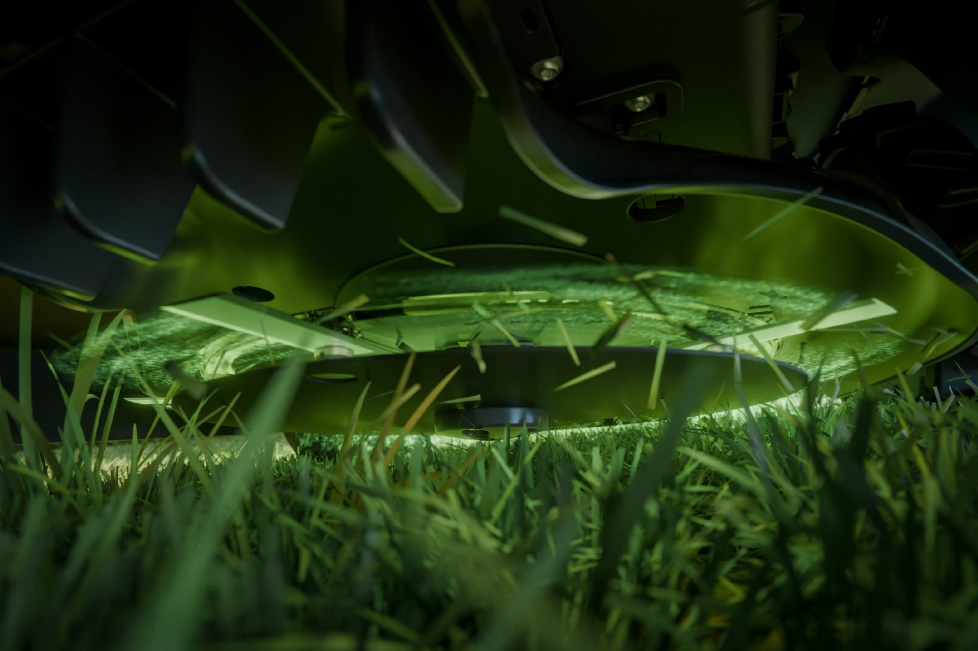 Sechs schwenkbare Messer: Mit sechs rotierenden Messern (2400 U/min) sorgt der Mähroboter für einen gleichmäßigen und gründlichen Schnitt.