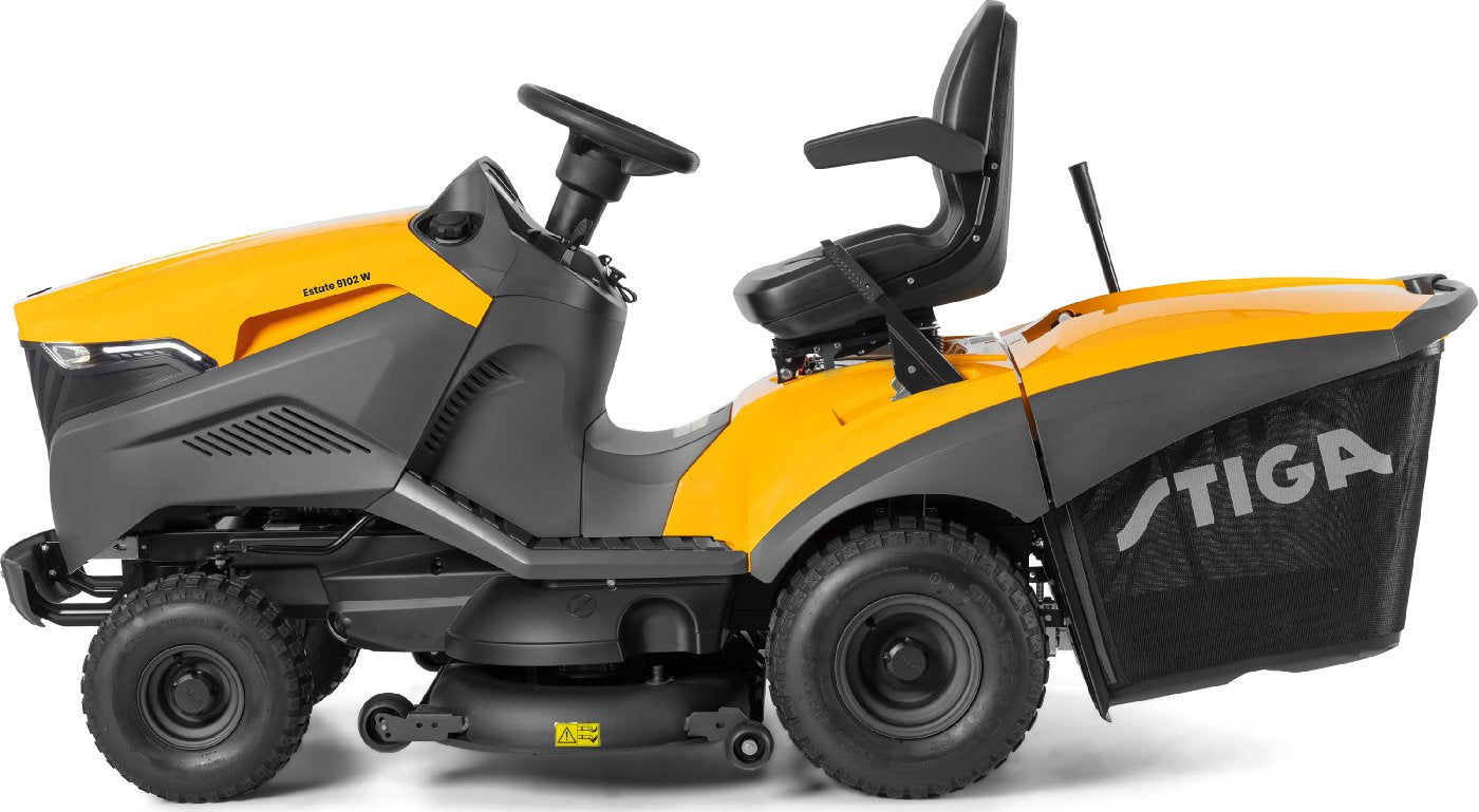 Stiga Rasentraktor Estate 9102 W mit Mulchstopfen, Anhängerkupplung und Ladegerät ist auf Lager und wird versandt, sobald es wieder verfügbar ist